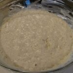 Slowly blend in 2 cups of AP flour or enough to make a sticky dough. Do not overbeat.
