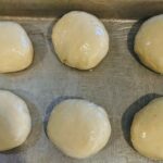 Roll each piece into a ball. I roll and then pull the dough underneath and tuck it into the bottom of the dough ball. You want each ball of dough to be smooth. No cracks or the dough will rise with imperfections for the next step.